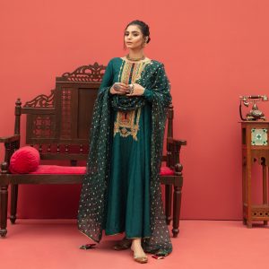 Frock: Delicate zari tilla, resham and sequins embroidery on neckline with finishes and detailing