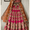 Lehnga: Indian silk, zari tilla, resham and sequins embroidery with additional hand embellishment on the front panels of lehnga