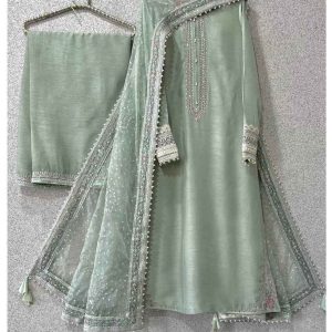 Duppatta:Organza, with zari tilla, resham and sequins embroidery with finishes