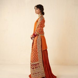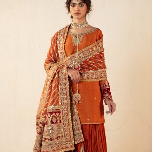Duppatta: Organza with zari tilla, resham and sequins embroidery and finishes