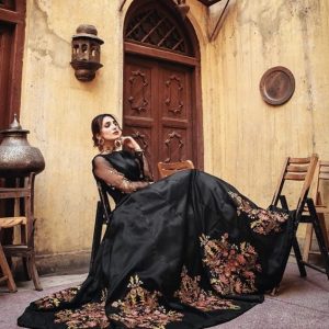 Work: Resham, zari tilla embroidery and hand embellishment on sleeves