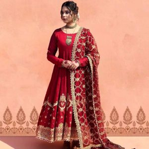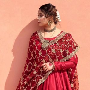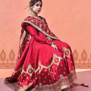 Frock: kattan silk with delicate zari tilla, resham and sequins embroidery