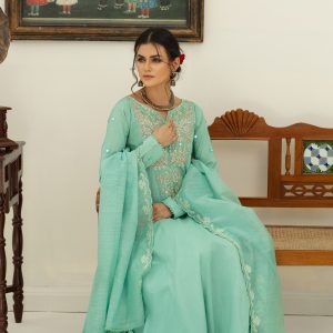 Delicate Resham, sequins embroidery with mirror work and finishes
