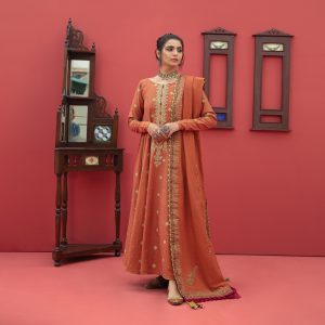 Frock: Delicate zari tilla, dorri(marori), resham, sequins embroidery on neckline and allover the fabric with finishes and detailing